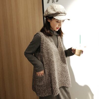ナチュラルなカラーがほっこりかわいいAラインのニットベストです♪