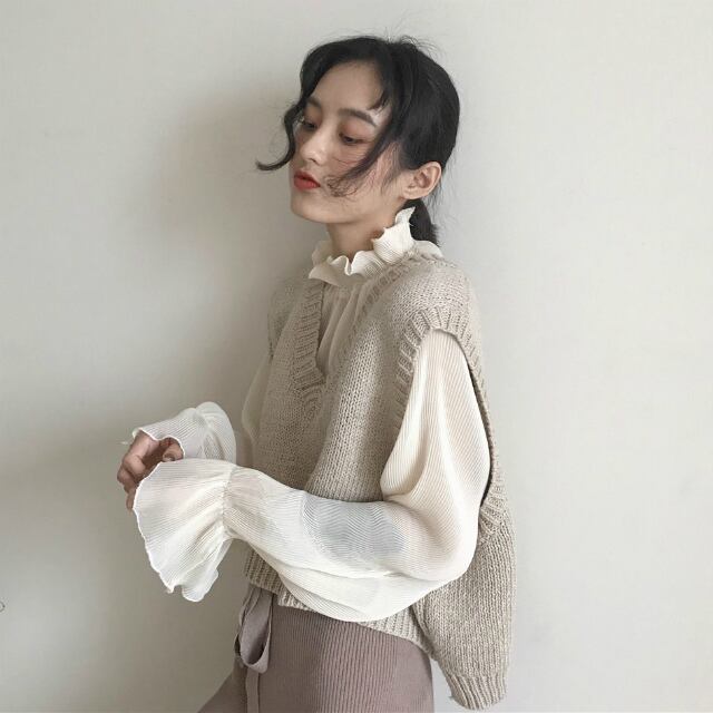 畔編みのざっくり編みが大人かわいいニットベスト!