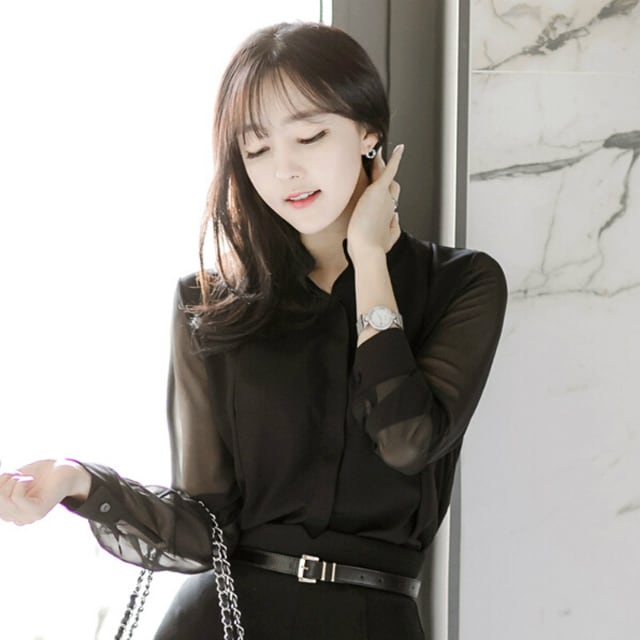 ◆袖の透け感がたまらない!シンプル黒ブラウス◆