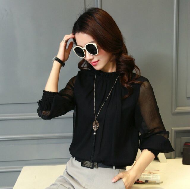 ◆袖の透け感&フリルのプチハイネックで今年らしさ満載のブラウス◆