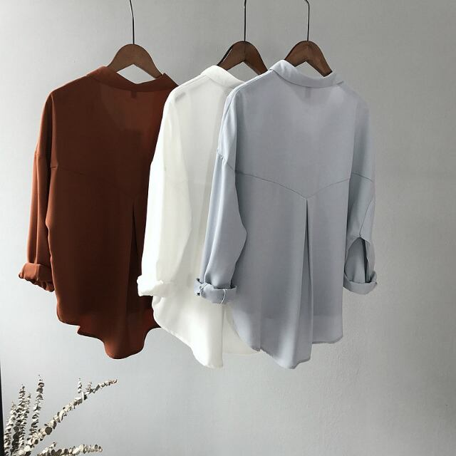 ●○抜き襟と落ち肩デザインでこなれ感を演出!柔らかシフォンブラウス○●
