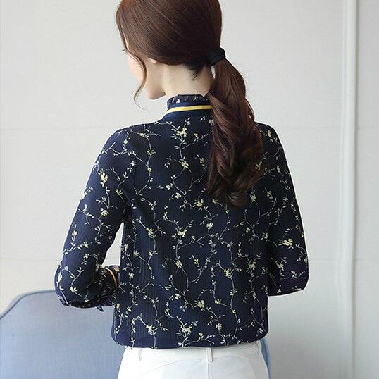 ネイビーできちんと感、イエローの花柄で華やかさも出せる女性らしさ満載の花柄ブラウス♪