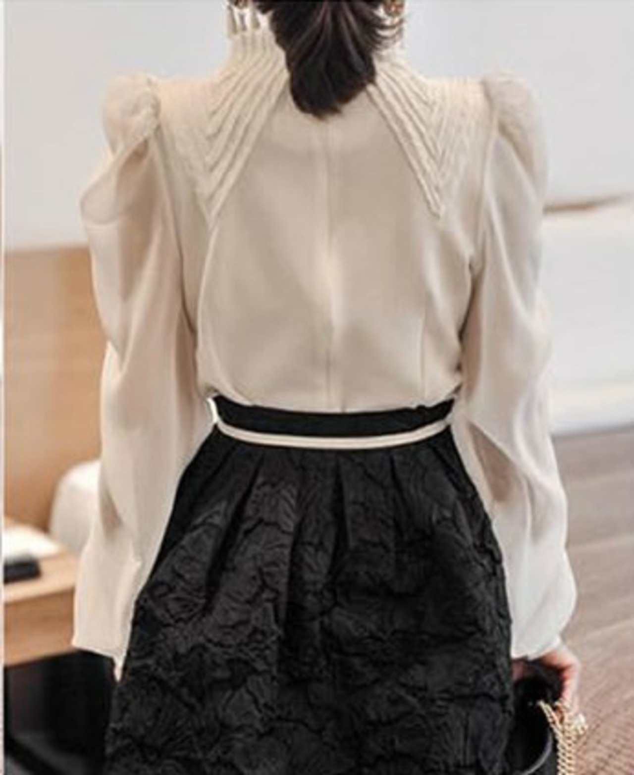 ◆首周りのデザインが印象的!上品なスタンドカラーブラウス◆