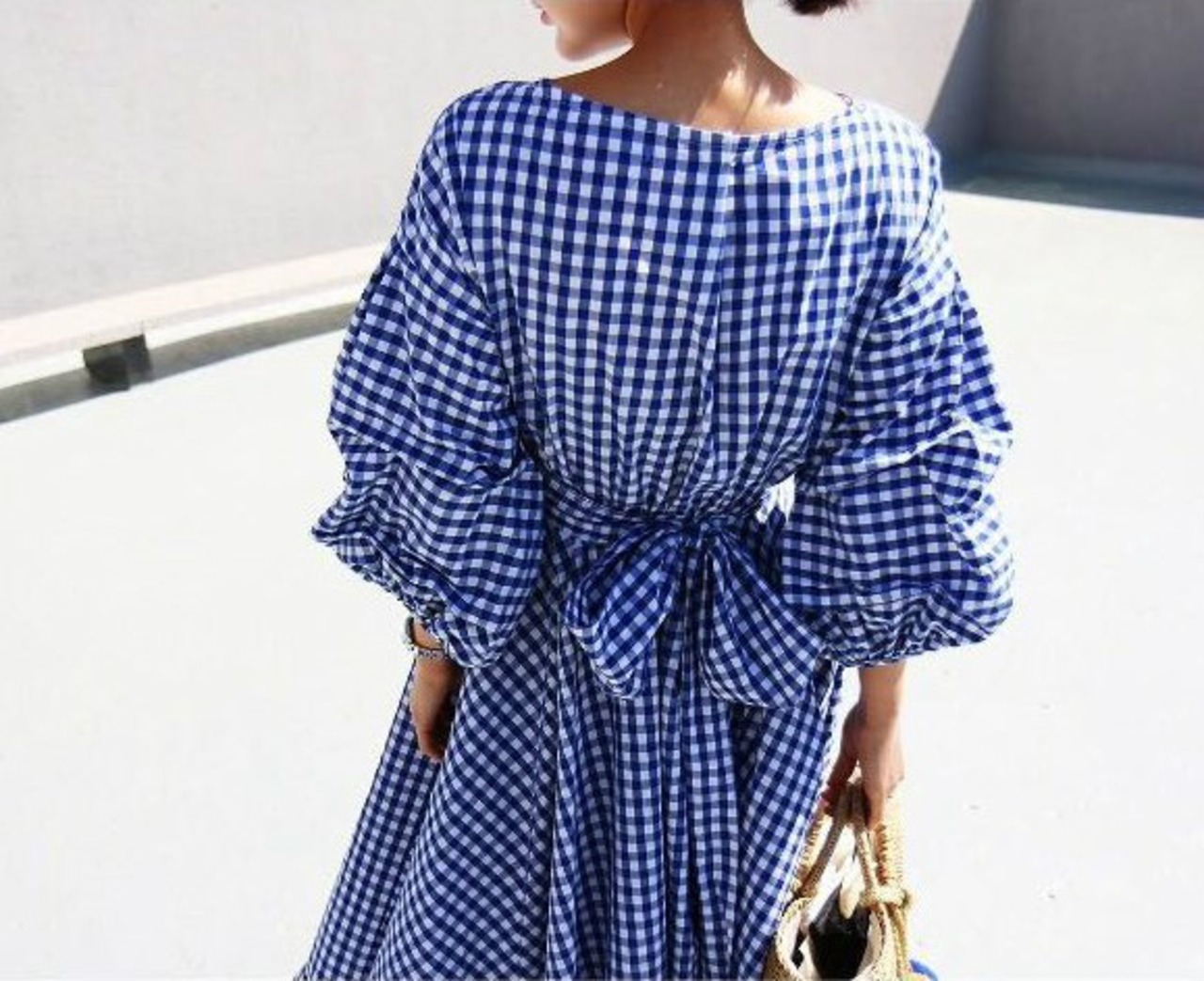 ギンガムチェックが爽やかな、ボリュームのあるふわっとしたデザインのワンピース。