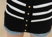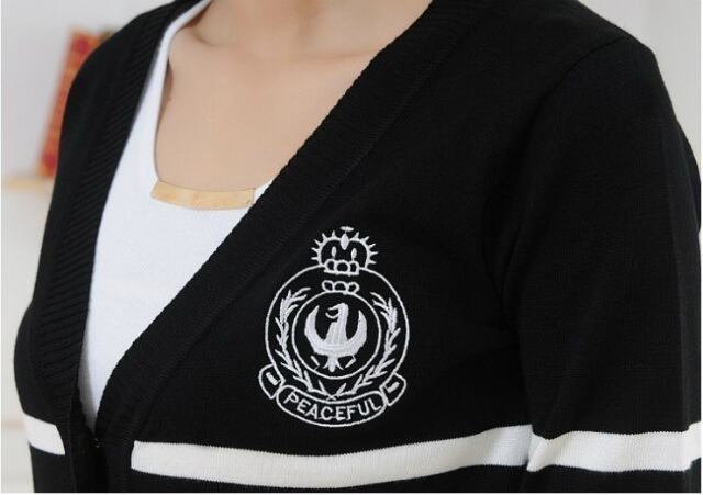●細ボーダーと胸の刺繍がポイントの細見えスリムカーディガン●