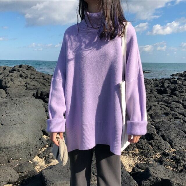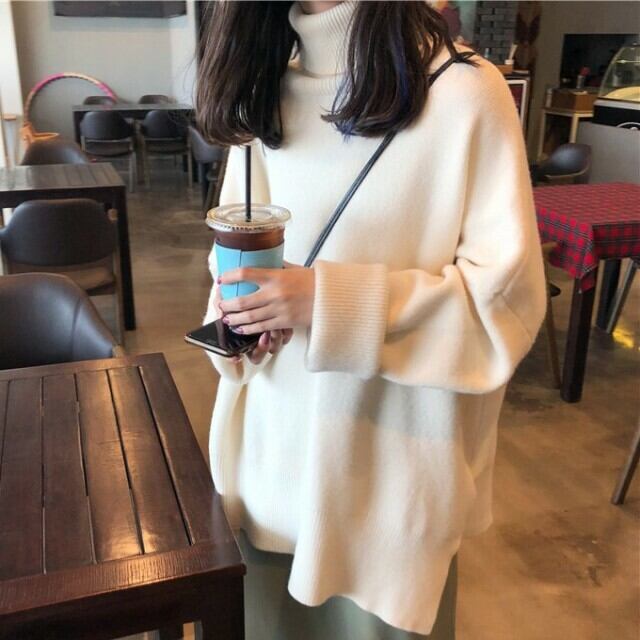 ●ふんわりディティールが大人かわいいタートルネックロングニット●