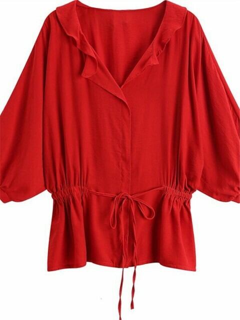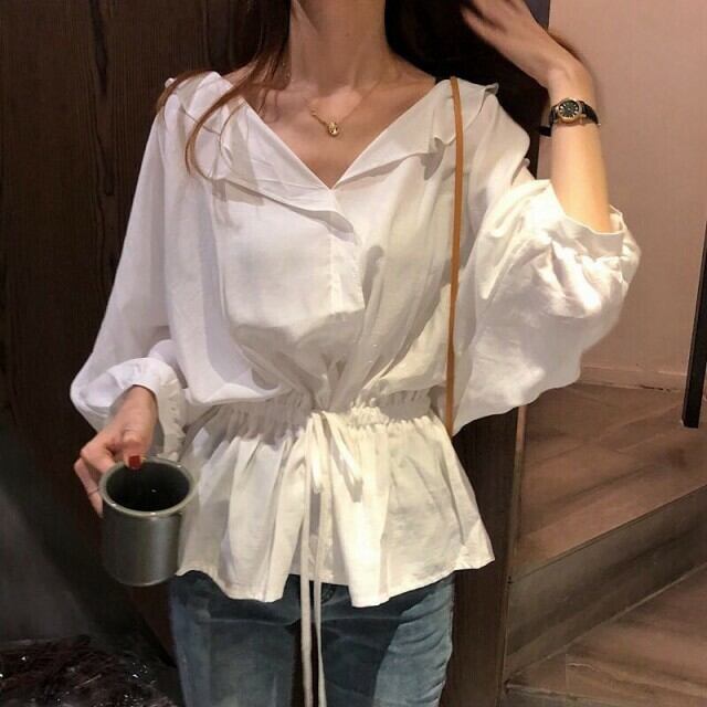 ●とろみ感が女性らしい!ボリューム袖抜き衿ブラウス●