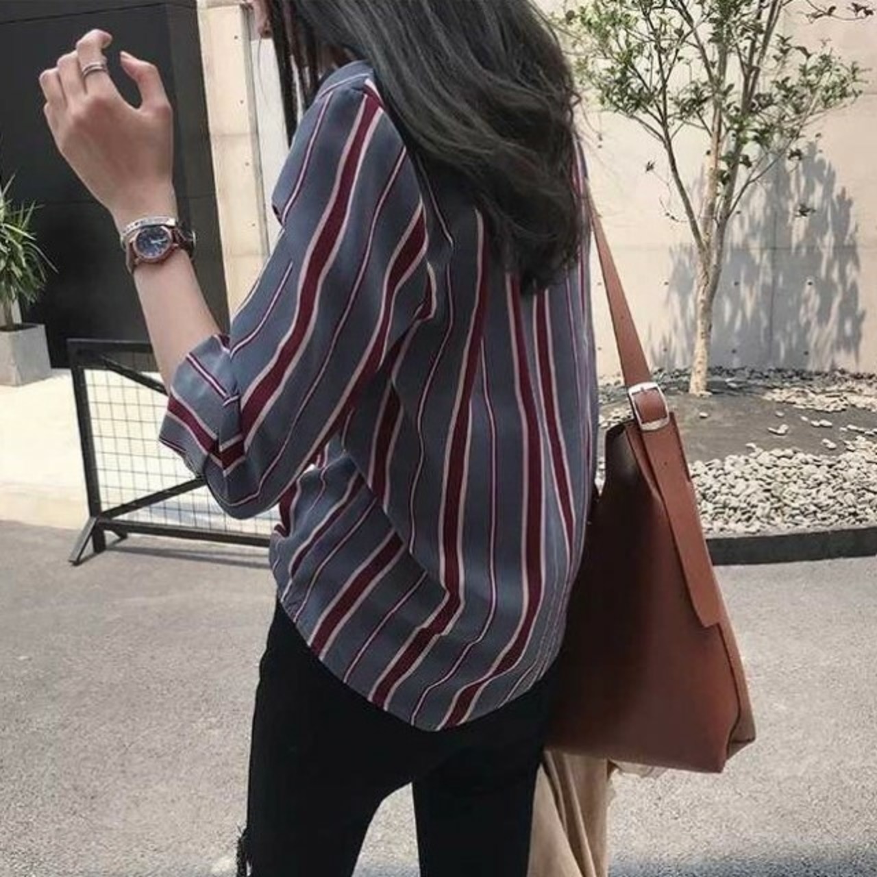 ●レトロ配色のストライプ柄がお洒落な襟付きシャツ●