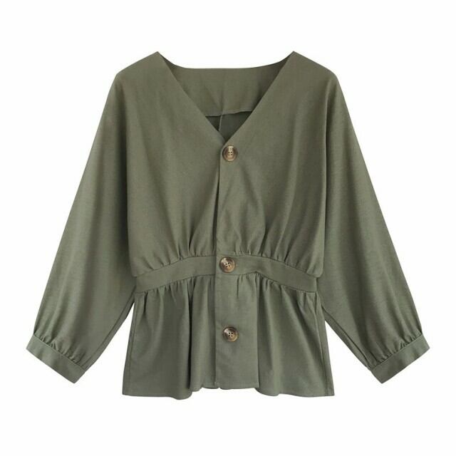 深めに開いたVネックでゆったりと空気感のあるフリルデザイン。