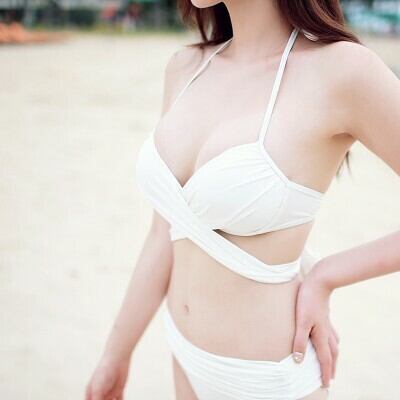 ビキニ ホルターネック クロスデザイン バストアップ スタイルアップ セクシー アースカラー おとなっぽい 着やせ効果 体型カバー バックリボン ヘルシー シンプル 旬 水着 スイムウェア | seriep